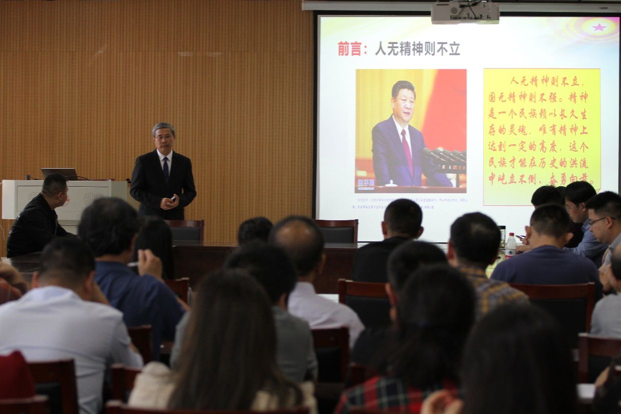 10月18日下午,yl6809永利官网在L楼302召开全体教职工大会,开展强化师德师风建设打造一流师资队伍专题教育活动,邀请全国模范教师、安徽师范大学教授、博士生导师路丙辉教授作专题报告,学院全体教职工参加报告会,党委书记陈银凤主持会议。