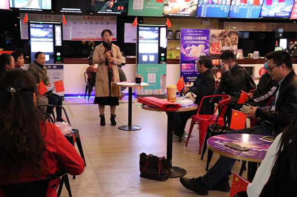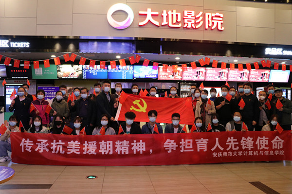 手拿国旗,胸配党徽。学院师生党员50余人在观影活动前集体上了一堂以“传承抗美援朝精神”为主题的微党课。学院党委书记陈银凤带领大家学习了习近平总书记在纪念中国人民志愿军抗美援朝出国作战70周年大会上的讲话精神,介绍了抗美援朝的历史背景和传承意义,并结合贯彻落实习近平视察安徽的重要讲话指示精神以及“四史”学习目标,对全体师生党员提出了具体要求,希望大家加强党性修养不忘初心与使命,增强学习与自我提升的自觉;充分认识到党员的角色与责任担当,在学习、工作与生活中做好排头兵,发挥示范引领作用;要立足学院发展进一步增强创新意识,结合专业教与学的实际积极实践进行科学精神培养与传承,各支部要凝心聚力有效发挥基层党组织战斗堡垒作用。