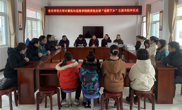 12月14日,永利官网教师党员在党委书记陈银凤的带领下赴太湖县西冲村开展结对扶贫慰问和“送教下乡”主题活动,为结对的困难群众送温暖,在乡村学校通过支部结对开展以捐书助学、教授博士进课堂等为内容的“送教下乡”活动。