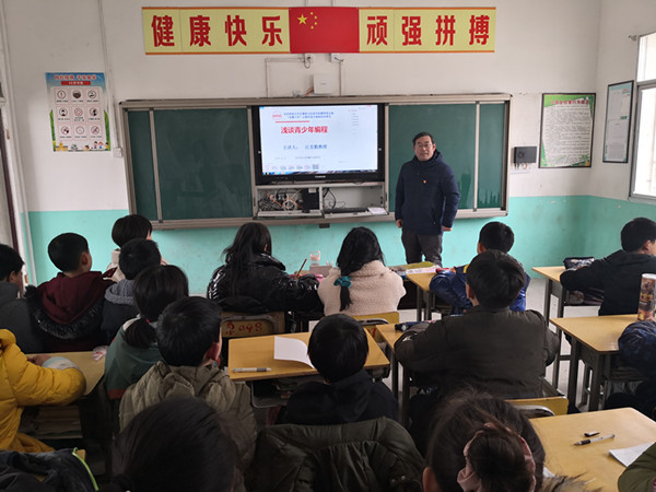 在马庙小学,学院三个教师党支部联合开展了“送教下乡”主题活动。活动中结对支部进行了座谈交流,支部联合捐书助学设立了爱心图书角,现场慰问了留守儿童,教授博士走进小学课堂,对学生们进行了网络安全教育、程序设计基础知识普及等。座谈会上,学院教师第三党支部书记江晋剑介绍了两支部结对一年来的工作进展及成效,朱河小学党支部书记朱俊峰对yl6809永利官网为学校教育发展提供的支持表示感谢,双方就后期的结对工作进行了深入交流。陈银凤一行参观了马庙小学图书室,并在现场设立了yl6809永利官网爱心图书角,持续开展了捐书助学活动,并为留守儿童送上了学习及体育活动用品。教师第一党支部书记江克勤教授和支委刘德阳博士给小学生上了两堂别开生面的课——《程序设计基础知识普及》、《网络安全知识教育》,现场孩子们踊跃发言,气氛热烈,接受了网络安全教育及计算机相关知识的普及,孩子们的学习兴趣得到有效激发。
