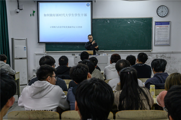 “作为新时代的大学生干部,在做好学生学习的本职以外,还需要做好对班级同学的服务工作。”数据科学与大数据技术专业2019(2)班的王祥国在听完课后说,“今后我会更加认真学习,同时也会积极参加活动,让大学生活变得繁忙且充实起来。”