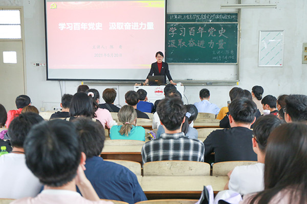 5月20日中午,yl6809永利官网党史学习教育宣讲会在稼先南楼一阶举行,学校党委宣传部常务副部长陈秀作了题为“学习百年党史,汲取奋进力量”的专题报告。宣讲会由学院党委书记陈银凤主持,副书记江晋剑、部分教师及全体学生骨干等近百余人聆听了报告。