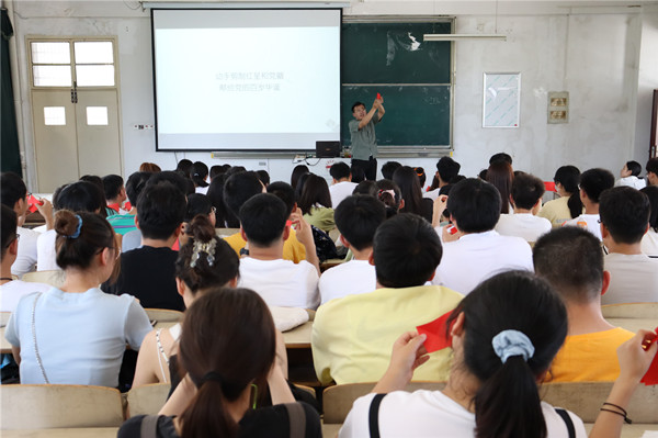 “中国剪纸是一种用剪刀或刻刀在纸上剪刻花纹,用于装点生活或配合其他民俗活动的民间艺术。在中国,剪纸具有广泛的群众基础,交融于各族人民的社会生活,是各种民俗活动的重要组成部分。”安庆宝晋轩文化传媒有限公司创始人曹英杰担任本次活动的主讲人,他对剪纸艺术的起源和发展做了简单介绍,希望与学生们一起探索更多剪纸艺术的表现形式,在党的百岁华诞的喜庆氛围里对非物质文化遗产进行传承传播。