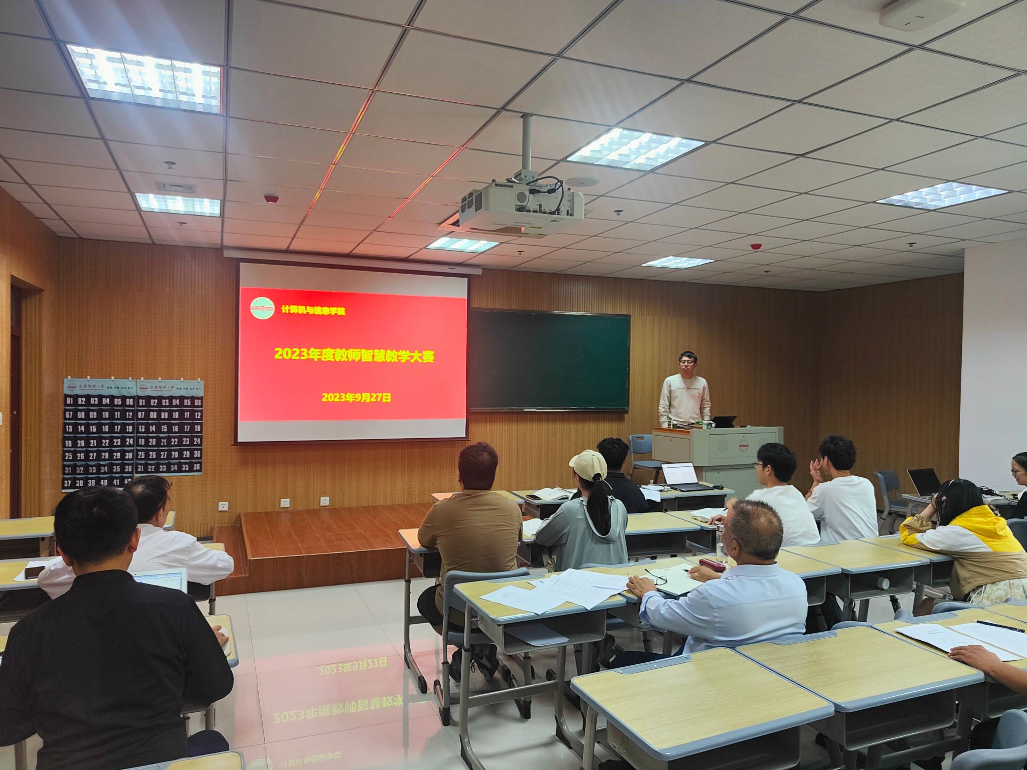 2023年9月27日下午,永利官网在龙山校区L102举行了2023年度教师智慧教学大赛。本次大赛由副院长吴海峰主持,邀请钱萌、王一宾、江克勤、蔡庆华等四位专家担任评委,多位学生旁听。