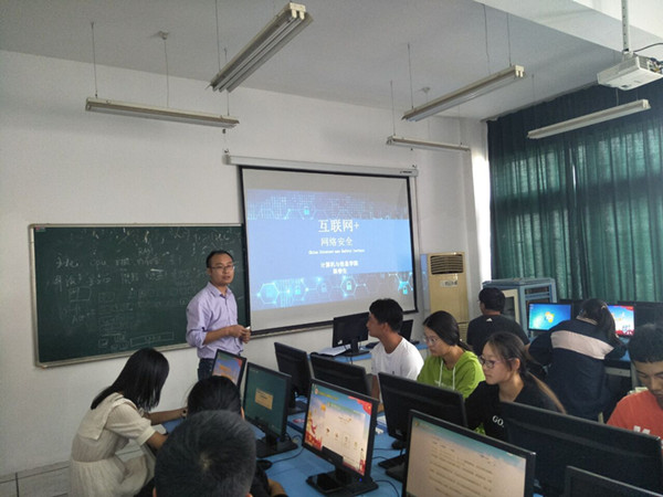9月23日至27日,是2019级新生进入大学以来正式上课的第一周,该学院教师第三党支部成员计算机实验室主任陈春生按照新生计算机基础第一课的教学安排,对所授课的新生开展“互联网+网络安全”主题教育与培训。陈老师主要从网络行为安全、网络交易安全、网络交友安全等角度分析了网络安全特点、网络安全的风险与隐患,网络安全防范措施等,旨在向广大新生宣传“共建网络安全、规范网络言行、杜绝网络谣言、保护信息安全、提高法律意识、共享网络文明”的思想,提高大家的安全意识,规范网络行为。现场,陈春生还带领大家学习了计算机类实验室安全知识,对计算机类实验操作规范、实验室的规章制度等进行讲解,同学们也认真参加了实验室安全与操作规范测试。同学们认为陈老师的讲解深入浅出、实用性强,计算机基础课程的第一节课内容很重要,形式很新颖,印象很好,感觉受益匪浅,并表示在以后的学习和生活中一定注意自己的一言一行,加强知识学习,提高网络安全意识和安全防范技能。