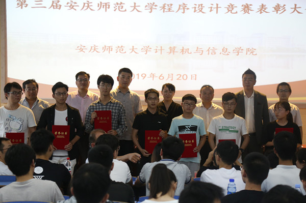 第三届程序设计大赛表彰会上,该院党委委员指导教师代表江克勤教授对大赛进行了总结分析,指出了参赛面、比赛投入、集训方式等方面存在的问题及相关改进方法;获奖学生代表进行了发言;在场领导嘉宾为获奖学生代表颁了奖。