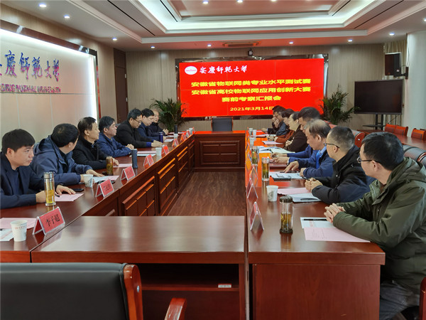 3月14日,安徽省物联网类专业水平测试赛、安徽省高校物联网应用创新大赛专家委员会主任吴先良教授一行来我校调研考察,听取了大赛的筹备工作汇报并就大赛相关工作进行了现场指导。党委书记许继荣, 党委常委、副校长刘友忠分别接见吴先良一行,校党委常委、副校长吴琼出席了汇报会,教务处等部门负责人、yl6809永利官网领导班子以及物联网专业负责人参加了会议。