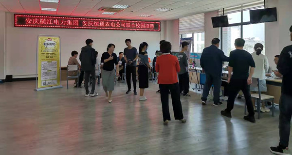 5月8日下午, 永利官网联合安庆横江电力集团、安庆恒通农电公司在龙山校区外语楼207室举办专场校园招聘会。学院组织约50名2021届毕业生参加了招聘会,学院党委书记陈银凤到会指导,并与用人单位现场进行了沟通与交流。