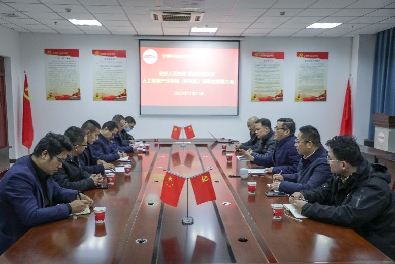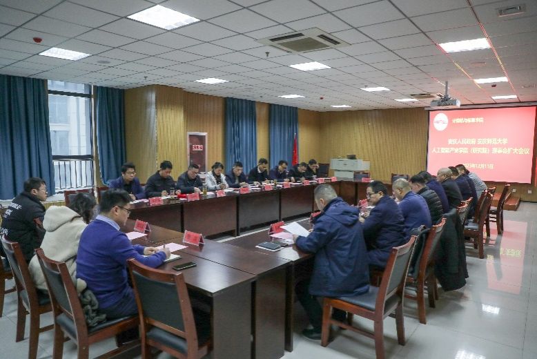 为深入学习贯彻党的二十大精神,持续深做实市校合作,进一步加强人工智能产业学院(研究院)的建设与发展,12月11日,我校人工智能产业学院(研究院)在学校L楼3楼进行了第二届理事会换届选举,随后召开理事会扩大会开展产教融合专项推进。安庆市数据资源管理局副局长江伟、校教务处处长潘锦云,校大别山区域发展研究院、创新创业学院相关负责人、yl6809永利官网领导班子和教师代表参加了扩大会,会议由yl6809永利官网院长、人工智能产业学院(研究院)院长刘奎主持。