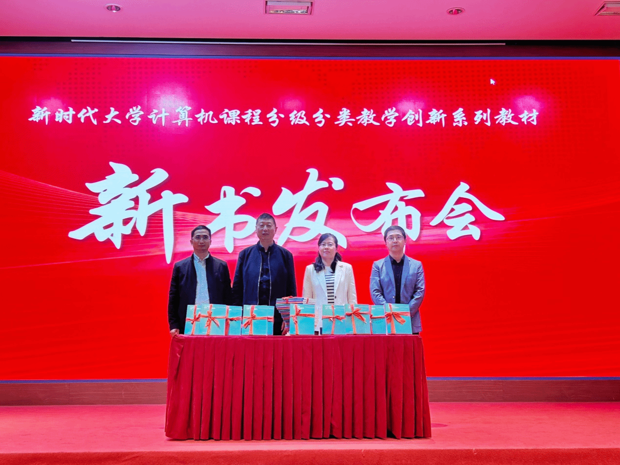 会上,安徽省高等学校计算机教育研究会还举行了“新时代大学计算机课程分级分类教学创新系列教材”新书发布会,学院江健生老师作为主编代表参与了揭幕新书。该系列教材由上海交通大学出版社出版,是安徽省内多所高校合力编写,凝聚了相关领域专家、学者的集体智慧,该系列教材涵盖了非计算机专业通识类教材和计算机专业通识类教材,旨在为广大师生提供一套理念先进、规范性强、集成度高、适用性好的计算机新形态教材。