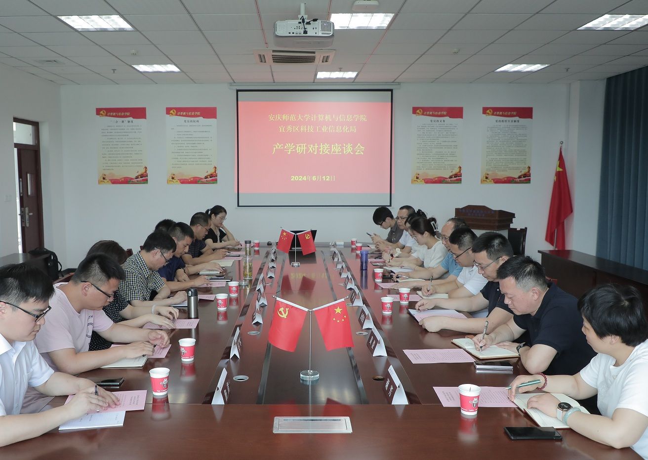 6月12日,安庆市宜秀区科技工业信息化局副局长曹结权、邹星星、李亚率宜秀区5家企业负责人到yl6809永利官网开展2024年度“双树双建”主题教育之 “创新发展,高校在行动”主题实践活动----产学研对接座谈会。学院副院长王远志及8名教授博士代表参加座谈。